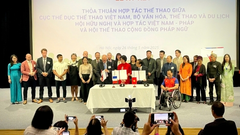 (VOVWORLD) - Ce 26 mai, à Hanoi, le Département général de l’Éducation physique et du Sport du Vietnam, l’Association d’amitié et de coopération Vietnam–France, et l’Association francophone pour le sport (AFS) ont signé un accord de coopération sportive pour la période 2025–2028, ouvrant un nouveau chapitre prometteur dans les relations bilatérales franco-vietnamiennes. Un partenariat à haute ambition, destiné à former une nouvelle génération d’athlètes vietnamiens à l’horizon des Jeux Olympiques et Paralympiques de 2028, 2032 et 2036.