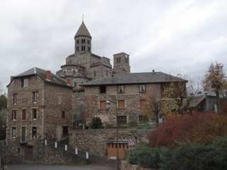 Quittant Saint-Nectare-le-bas, après environ dix minutes de marche sur une route sinueuse qui mène au mont Cornadore, nous voilà devant la fameuse église de Saint-Nectaire qui fait partie des six églises dites « majeures » d’Auvergne. Construite au 12e siècle, elle est dédiée à Saint Nectaire, évangélisateur de la France et de l’Auvergne. Joyau de l'art roman auvergnat, l’église de Saint-Nectaire est classée monument historique depuis 1840. Guillaume attire notre attention sur les détails remarquables de l’ouvrage : « La partie qui est à gauche, c’est la partie la plus sacrée, le chevet. Vous voyez les chapelles rayonnantes qui sont autour, en allant de l’arrière du choeur juste qu’ici. Cette pierre brune qu’on appelle le trachyte est une pierre qu’on trouve dans la région. Des motifs qui sont typiques de l’art auvergnat, en pierres polychroïsmes. Ce sont des motifs floraux qui sont typiques de l’école auvergnate. On ne retrouve ça qu’en Auvergne. Autre chose qu’on ne retrouve qu’en Auvergne, c’est la partie en dessous du clocher, le massif barlong, c’est déjà moderne pour l’époque, 12e siècle, puisque on a déjà une envie d’élévation, une envie de faire plus haut et de faire entrer la lumière plus facilement, parce que l’on retrouve ça dans l’art gothique, 13e, 15e siècle. Ce qu’il y a de remarquable, c’est les chapiteaux à l’intérieur. Ces chapiteaux sont historiés, ils racontent une histoire, l’histoire de la Bible. Donc, il y a des scènes extraordinaires, des scènes qu’on ne retrouve que dans ces églises majeures en Auvergne »