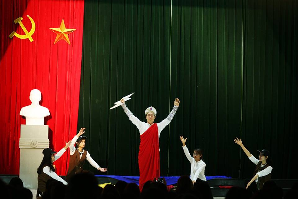 « Ils avaient été déjà bien formés dans l’atelier de théâtre de Céline Mariage, remarque Delphine Bougard, alors je suis arrivée, ils savaient un peu jouer, quand même. Et ils ont beaucoup progressé ! En très peu de temps, ils ont appris à danser, à savoir se tenir sur une scène. Je suis très fière de leur travail. J’ai monté déjà cette pièce en République de Macédoine, avec aussi des étudiants en langue française. Je l’ai monté également en Croatie, et maintenant au Vietnam.