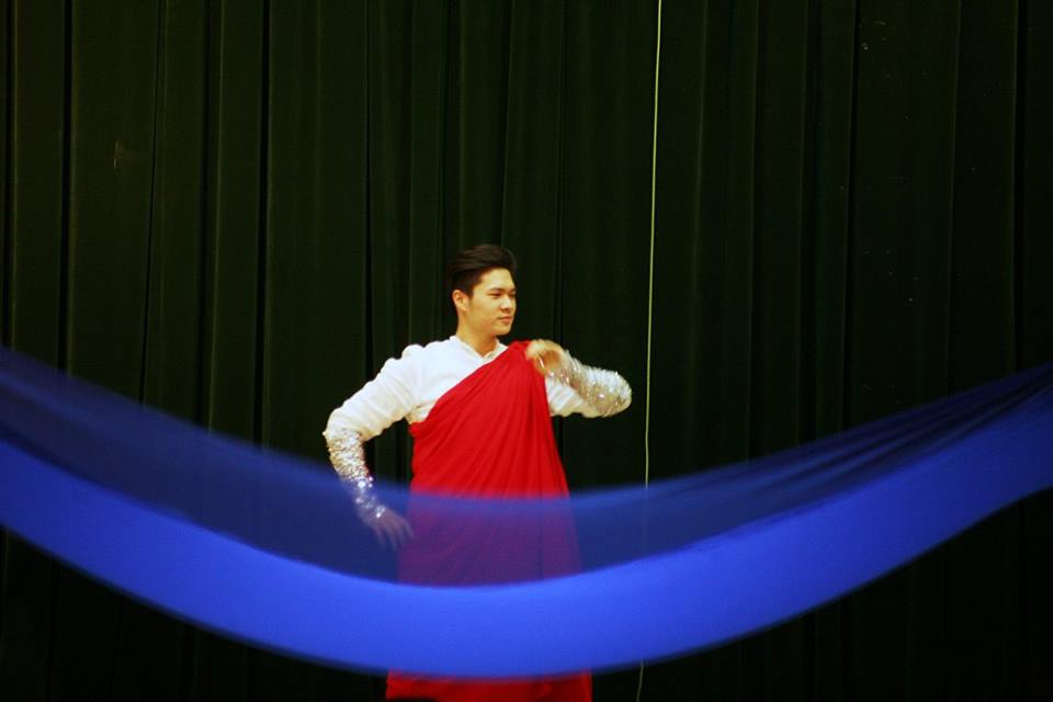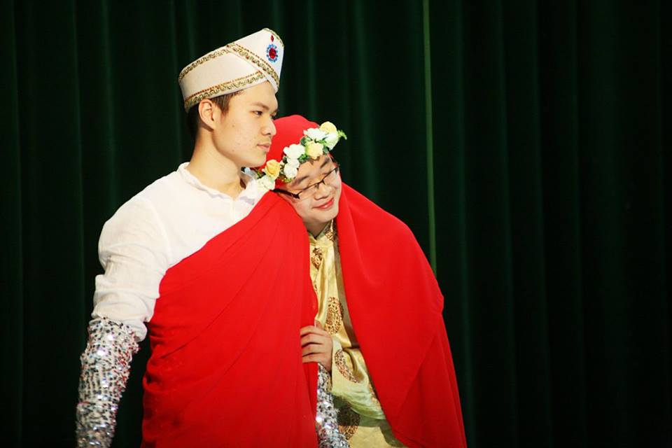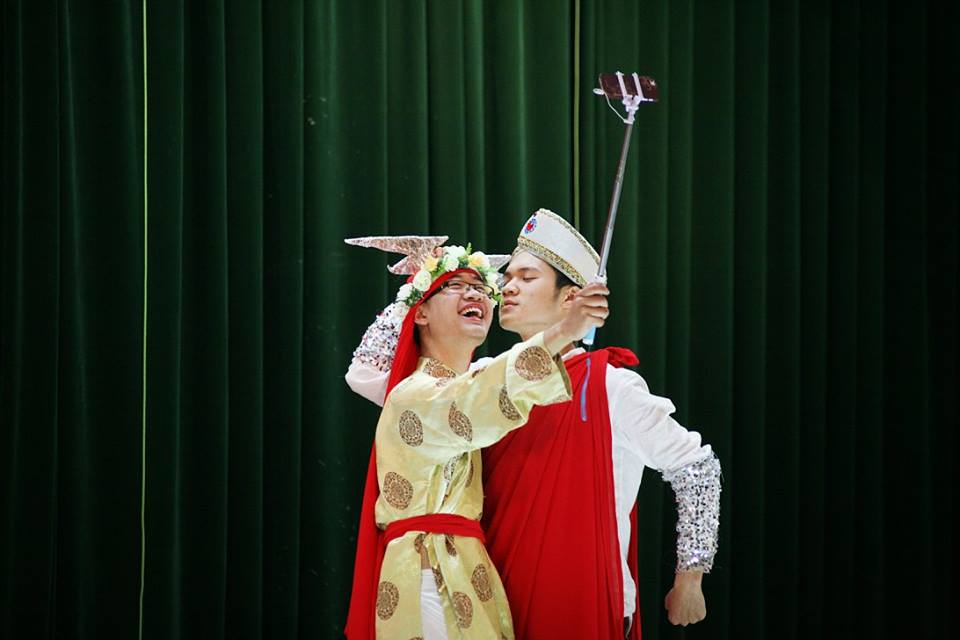 Dans « Amphitrychou », ce sont les filles qui jouent des rôles d’hommes et inversement. L’amante de Zeus, la belle Alcmène, est donc interprétée par Tien Hung, un étudiant.