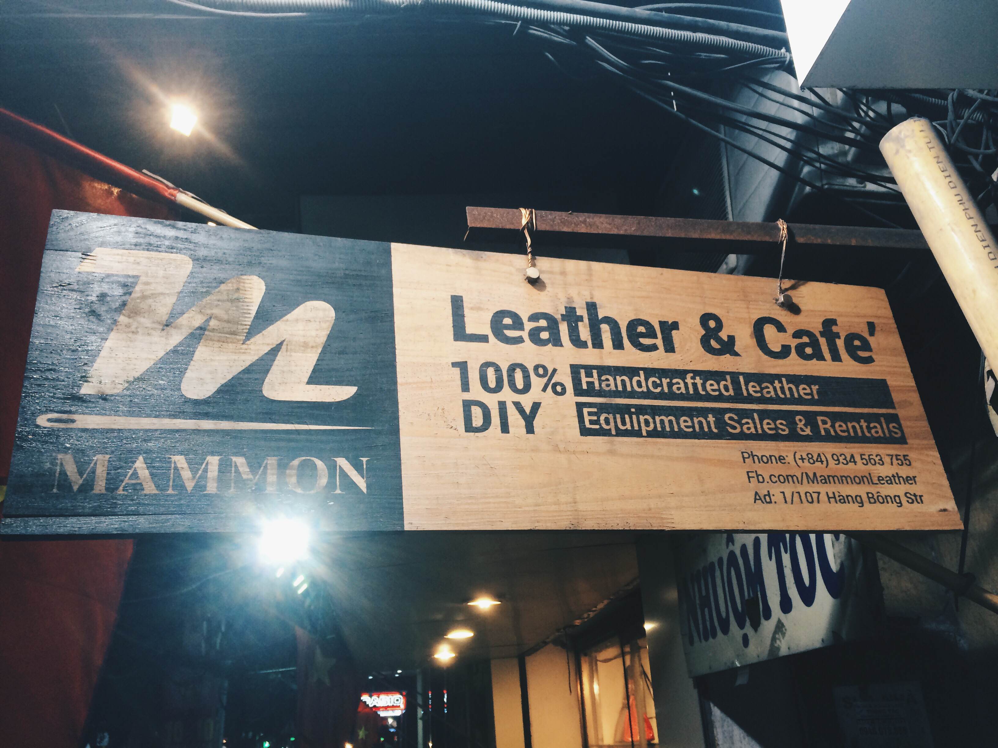 « Mammon Leather & Café - 100% DIY Handcrafted Leather »… Ce sont ces quelques mots, gravés sur un joli écriteau en bois, qui tiennent lieu d’enseigne publicitaire à Mammon, un café-atelier qui ne désemplit pas. Une enseigne, donc, mais aussi une odeur bien particulière, celle du cuir tanné, qui vous prend à la gorge, dès que vous ouvrez la porte.