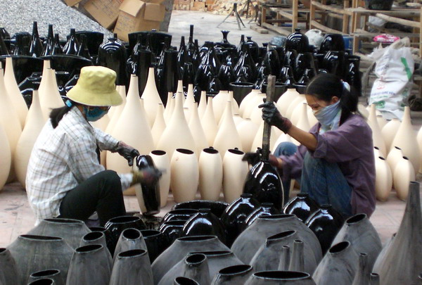 « L’un des plus pénibles… » Voilà des propos que l’on entend de plus en plus souvent à Bát Tràng, et pas seulement dans la bouche de Vũ Đức Thắng. La majorité des artisans en activité ne souhaitent pas voir leurs enfants leur succéder. Nguyễn Thị Hoa, qui est la patronne d’un atelier du nom de Hoà Lan, a hérité de la fortune de ses parents. Son atelier de trois étages fonctionne très bien, avec une cinquantaine d’ouvriers. Mais elle aussi, elle n’envisage pas de passer le flambeau à ses enfants : « Tous les parents sont comme moi, ils ne veulent pas que leurs enfants aient à travailler péniblement. Ils préfèrent les voir s’épanouir dans les études, c’est bien normal ! Moi, j’ai négligé cette question de la formation intellectuelle, alors évidemment, je n’ai pas eu le choix. C’est un métier difficile, avec une forte concurrence. L’avenir est incertain, dans la céramique. »