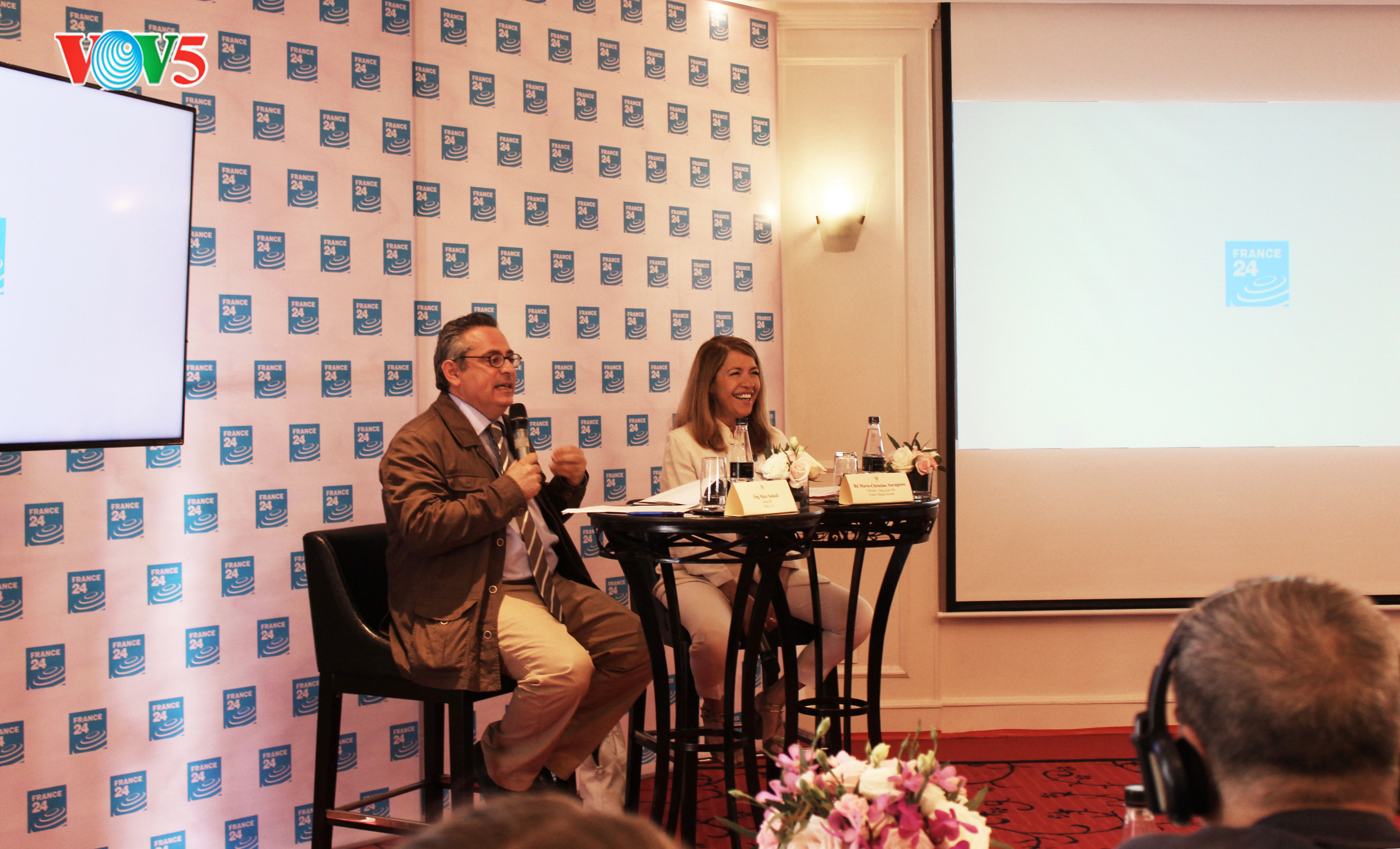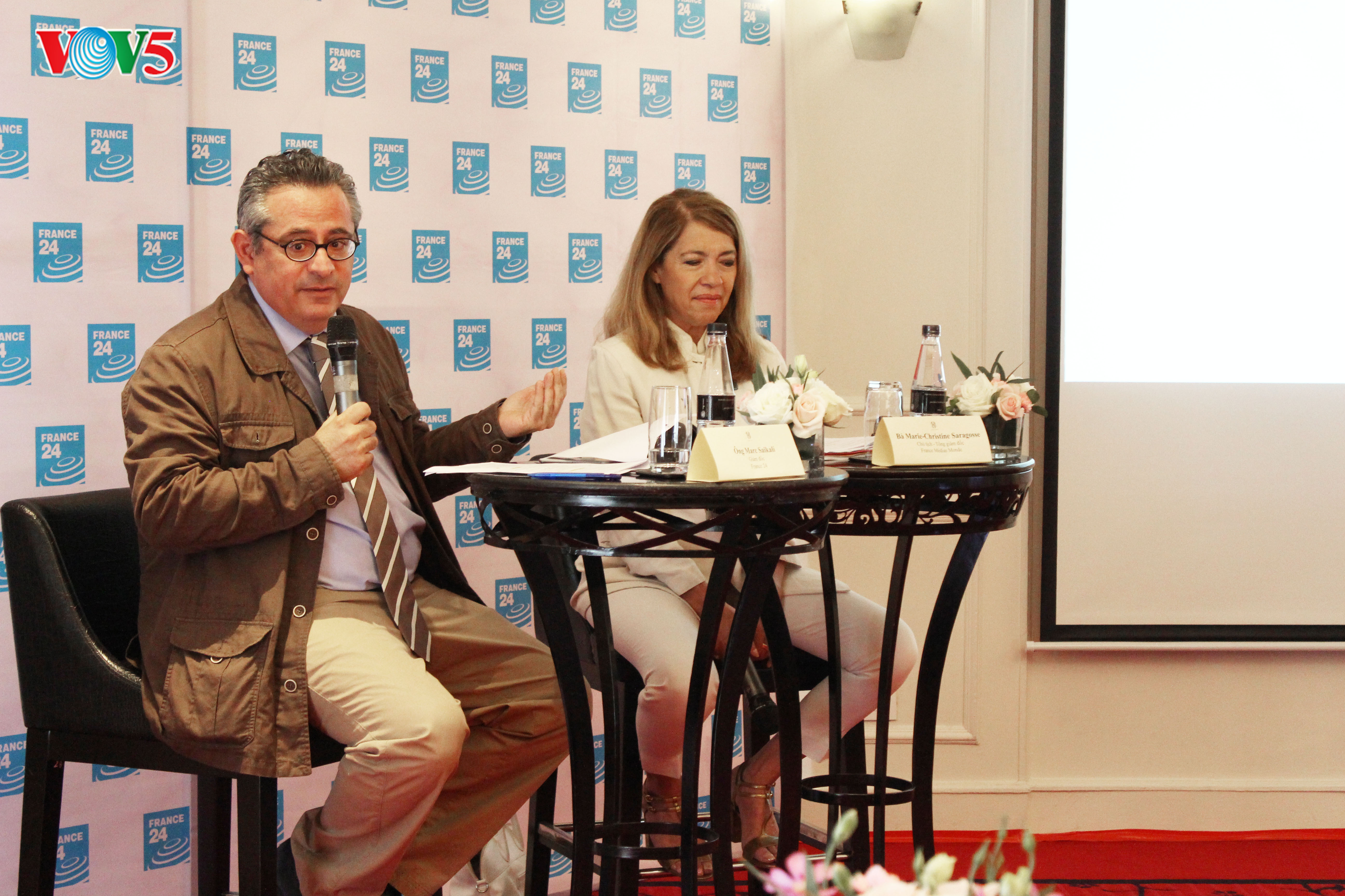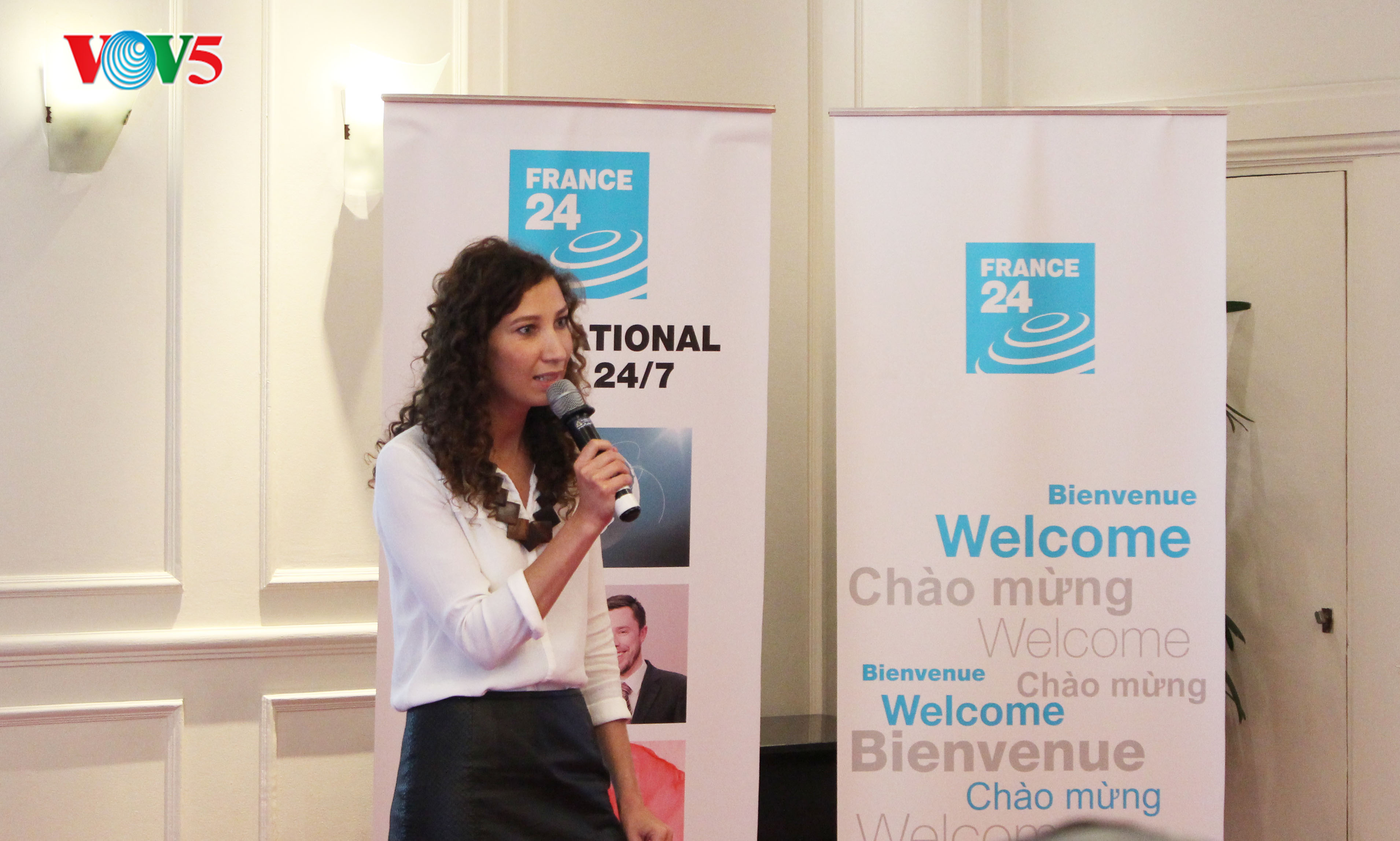De son côté, Marie-Christine Saragosse, présidente-directrice générale du groupe France Médias Monde auquel appartient France 24 a évoqué d’autres projets tout aussi ambitieux.