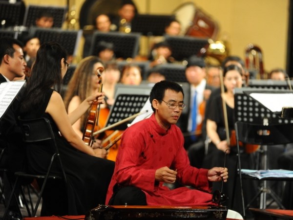 | Hoang Anh Tu et l'orchestre symphonique national. Photo: Thethaovanhoa |