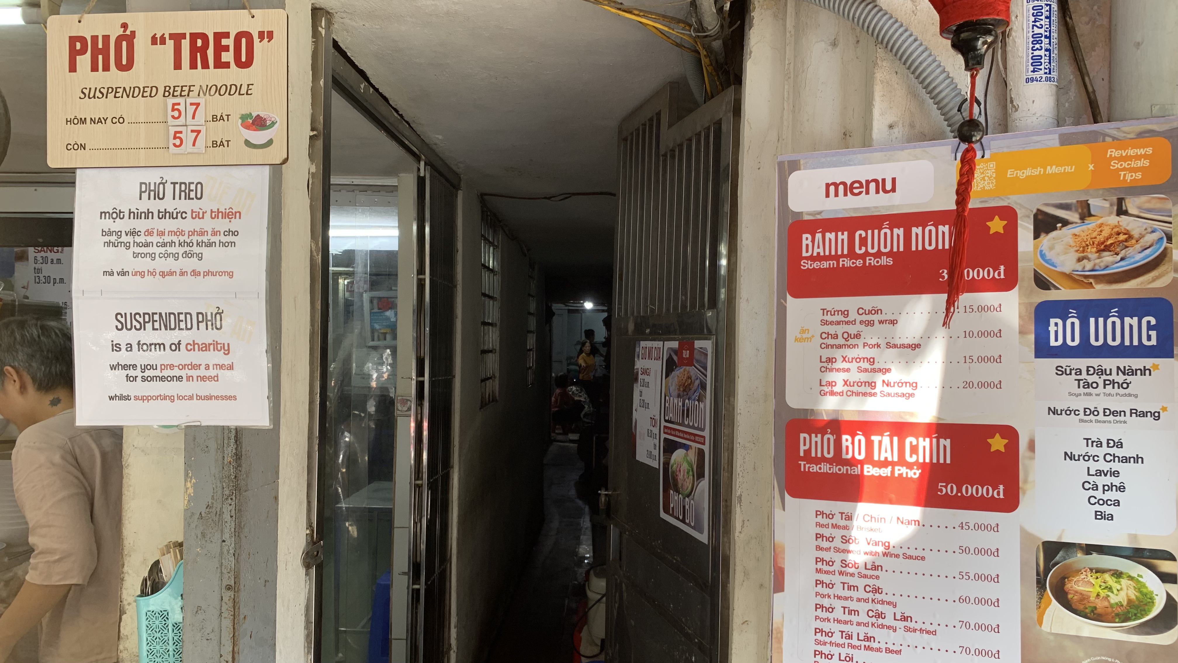 Le restaurant modeste au concept "Pho à crédit" niché dans la petite rue de Bao Khanh, dans l'arrondissement de Hoàn Kiêm, à Hanoï. Photo: Quynh Anh