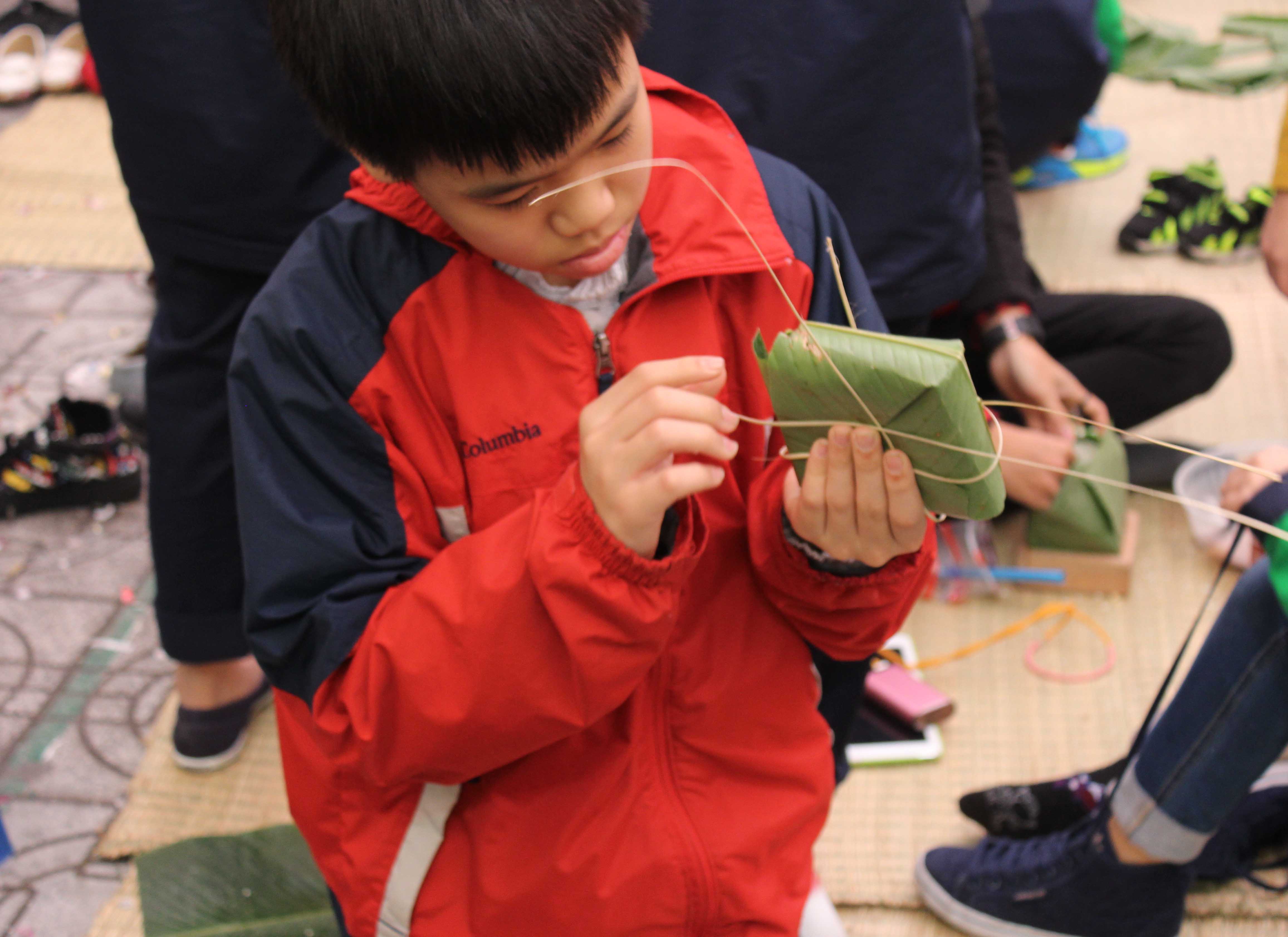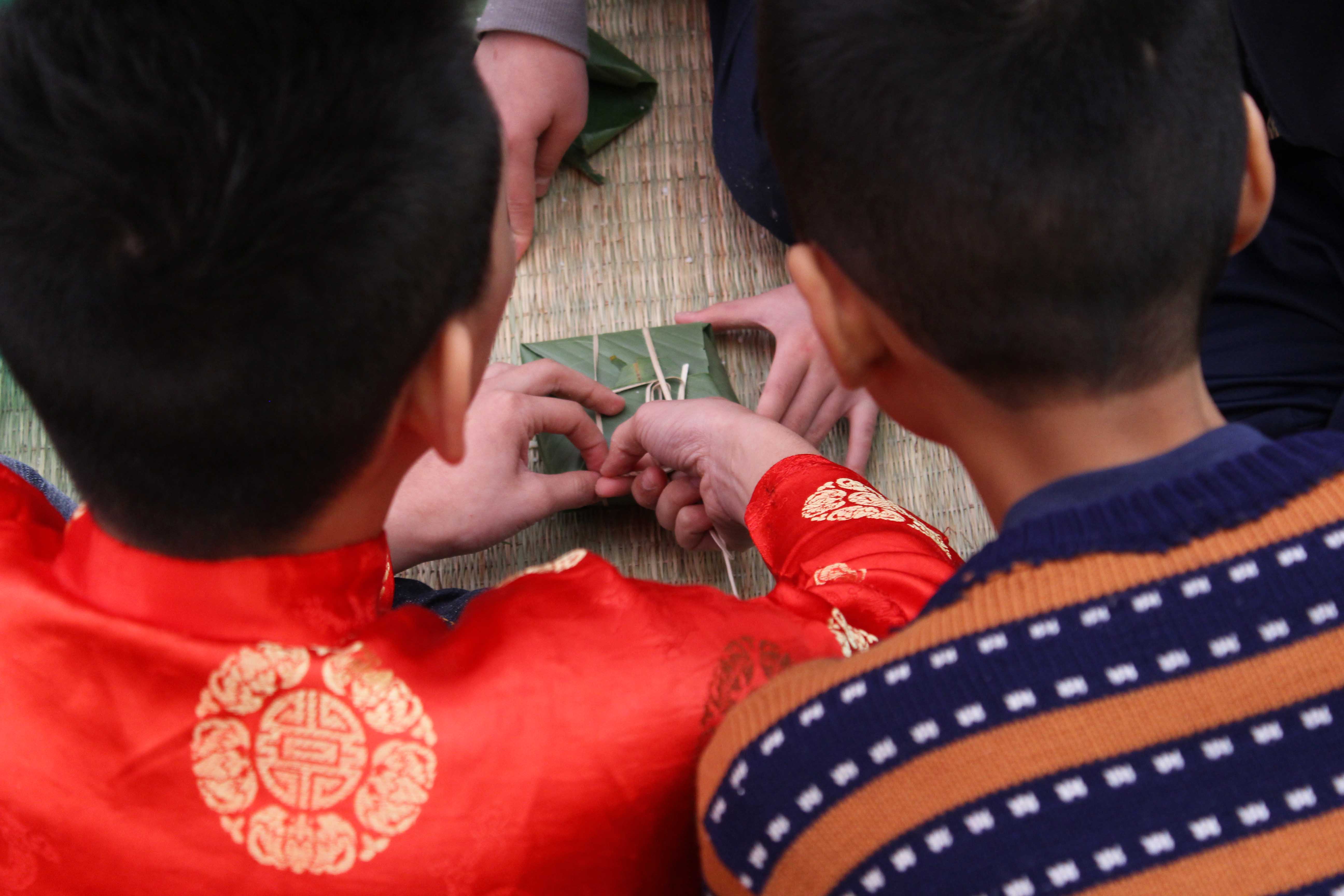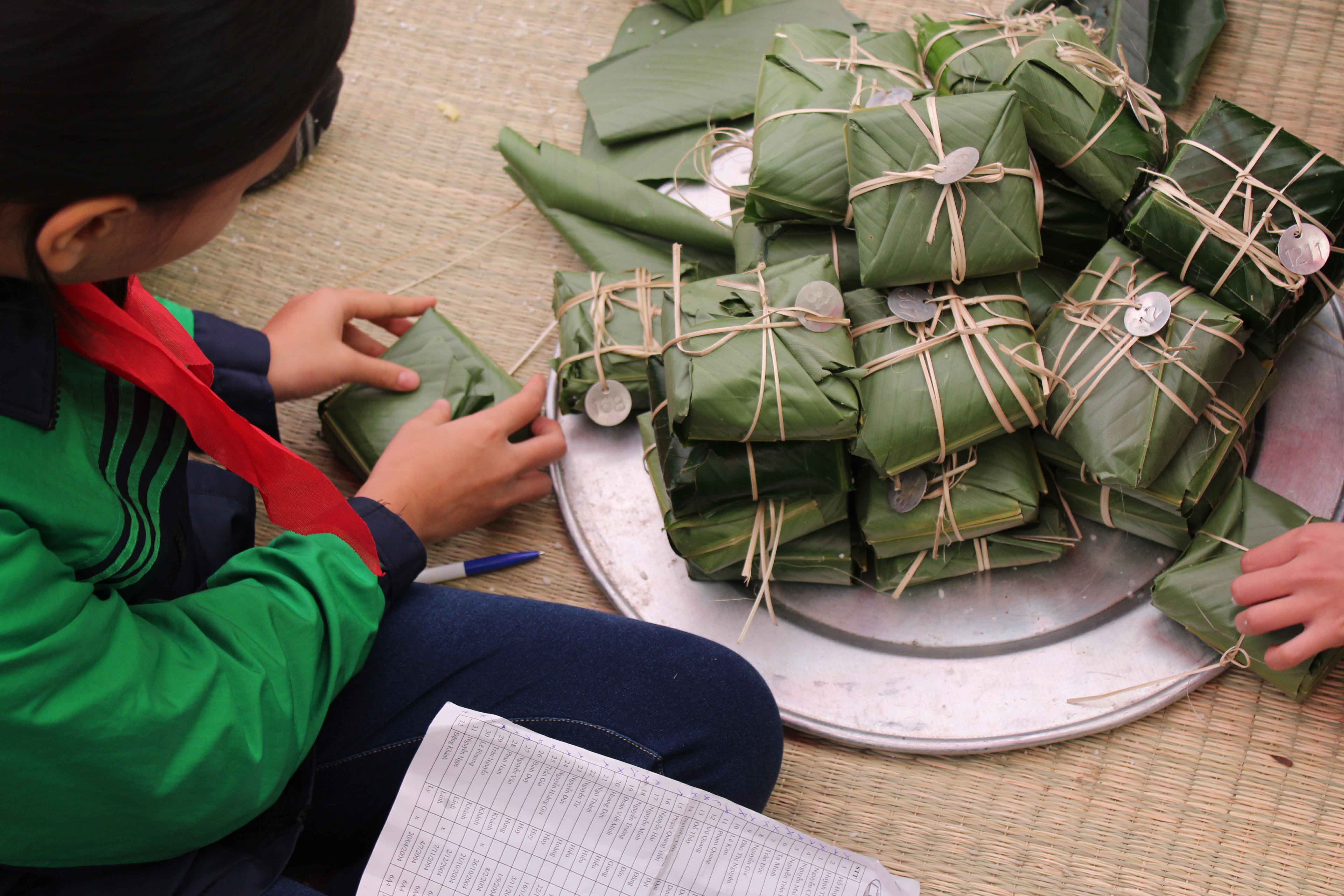 « Je suis très content de pouvoir apprendre à faire le bánh chưng,, même si ce n’est pas facile, évidemment. J’ai aussi pu apprendre quelle était sa signification, pourquoi on le plaçait sur le plateau d’offrandes... Et puis ce qui est bien, c’est que tout ça est fait pour que les enfants de mon âge puisse avoir un Tet heureux... » Ça, c’était Hoai An, une autre élève.