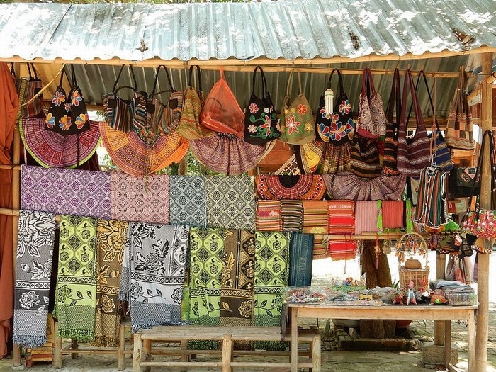 Alors, bien sûr, quand vient l’heure de partir et de s’arracher à ces lieux enchanteurs, on a envie d’en rapporter quelques petits souvenirs. Eh bien qu’à cela ne tienne! Les Thaïs tiennent boutique sous les planchers de leurs maisons sur pilotis, et on y trouve de tout : des brocatelles, des sacs, des écharpes, des couvertures, des outils agricoles, et même des arbalètes…