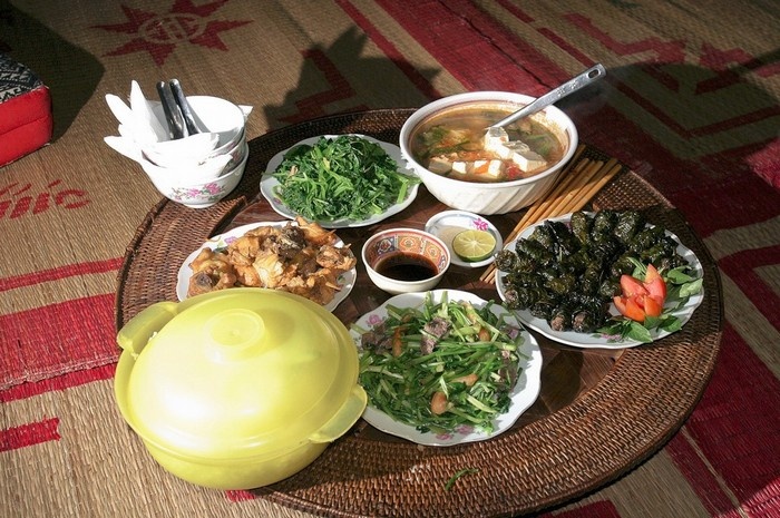 Alors bien sûr, le gîte, ça va avec le couvert, et de toutes façons, on ne voyage pas impunément avec des Français. Je veux dire en cela qu’il n’est pas question, pour mes compagnons d’infortune, de quitter les lieux sans en connaître les saveurs… Ça tombe bien pour eux car Hà Thị Lộc , encore elle, donne des cours.