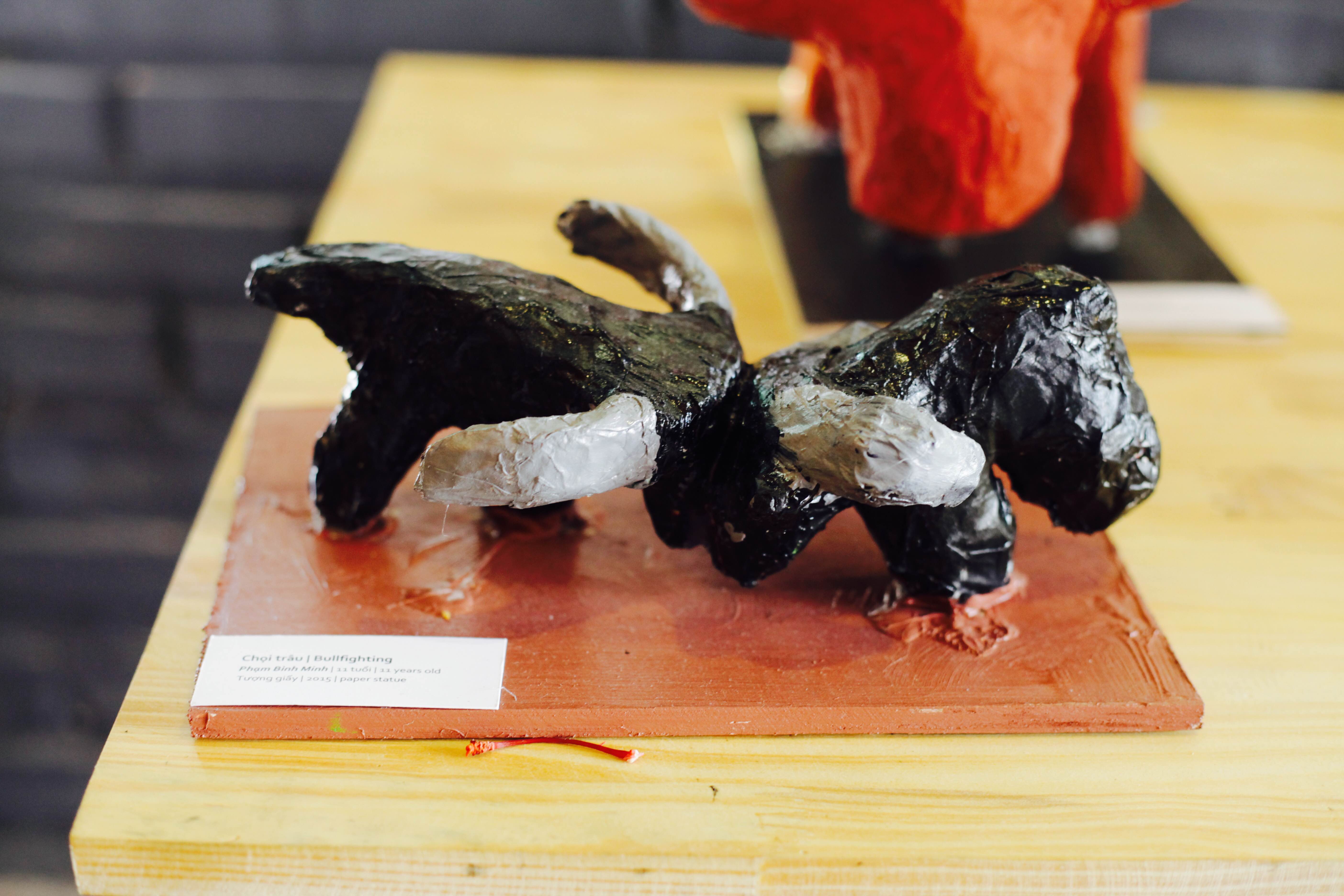 Il y a encore 10 ans, l’autisme était une maladie quasiment inconnue au Vietnam, et les politiques d’aide aux enfants autistes étaient en conséquence... Autant dire que les parents se retrouvaient esseulés, voire désespérés... Mais à force de côtoyer des enfants autistes au quotidien, les leurs qui plus est, ils se sont rendus compte qu’en dépit de comportements parfois déroutants, ils pouvaient tout à fait contribuer au développement social, comme nous l’explique Thuy Quynh, mère de Binh Minh qui excelle dans le modelage et l’art des papiers collés : "Quand j’ai appris qu’il était autiste, c’était comme si le ciel me tombait sur la tête ! Nous avons fait tout notre possible pour le guérir, à travers des interventions psychologiques, des interventions éducatives... Et puis nous avons fini par accepter... Par accepter que l’autisme faisait partie de sa vie et qu’il faudrait bien vivre avec. Binh Minh a commencé à se passionner pour les papiers à l’âge de 6 ans. Maintenant, il est rompu au contrecollage. Alors, pour nous, cette expo, c’est une façon de faire reconnaître son talent et de montrer à tous que les enfants autistes peuvent avoir un très réel penchant artistique qu’il convient d’encourager."