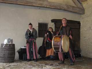 En attendant de pouvoir goûter les soupes, les visiteurs ont droit à un spectacle donné par les Tritons Ripailleurs, vêtus à l’ancienne et munis d’instruments assez exotiques. On voit notamment un davul, un instrument turc, une tarota, une sorte de cornemuse venant d’Espagne. Jan Kirkert joue du davul :