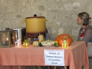 Il est 16h30. Le ciel est sombre. Il pleut. Nous voilà dans ce petit village médiéval aux jolies maisons en pierre pour la fameuse fête de la soupe. Première étape : se munir d’un bol fait par les villageois, que ce soit en céramique, porcelaine ou en bois, et une cuillère ! Pour goûter les soupes, c’est essentiel ! On fait le tour des stands en attendant le coup d’envoi qui ne sera donné que dans une heure trente ! Jean-Paul Loubat est en train de remuer une louche dans une grande casserole. Il nous explique les origines de cette fête de la soupe : « On a créé cette fête il y a 5 ans. C’était parti d’une blague en disant : « Et si on mangeait de la soupe ! ». La soupe en France est une nourriture populaire, c’est-à-dire que souvent, c’est la nourriture des pauvres. Il y a mille et une façons de faire de la soupe. A partir du moment où l’on met trois légumes dans une gamelle, on sait faire de la soupe. Donc il y a plein de possibilité. Le principe, c’est que les gens du village fabriquent une soupe, si possible, originale, gratuitement, et puis les gens dégustent la soupe après avoir acheté un bol. »