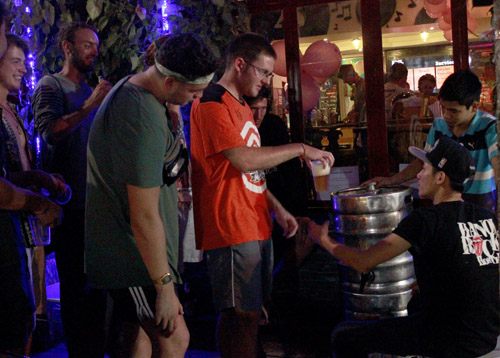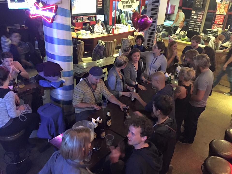 Comme à l’accoutumée, de 18 à 20 heures, la queue s’allonge dans la rue Hang Duong : c’est en effet durant ces deux heures que l’on peut se voir offrir une bière gratuite ! Eh oui ! De la bière gratuite pour tout le monde, offerte par Hanoï Rocks Hostel, la première auberge de jeunesse de la capitale, et même du Vietnam. Nguyễn Thanh Tùng est le propriétaire de ce lieu «culte» :