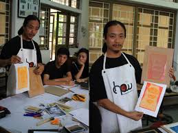 Dans la gravure en relief, les parties non-sculptées de la planche retiennent l’encre, qui est ensuite déposée sur le papier. Cela étant, le métal et même la pierre se sont substitués au bois. Nguyen Nghia Phuong, encore :