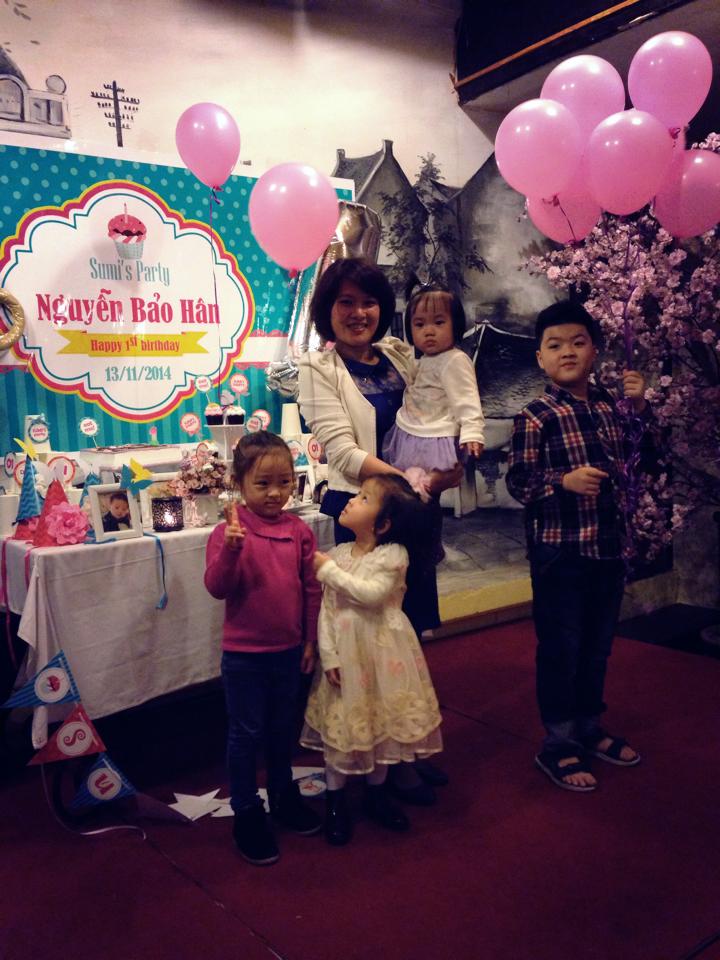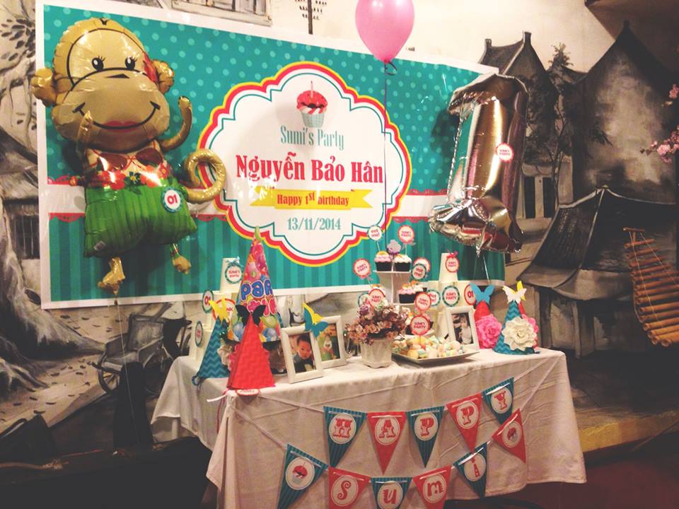 C’est Hoang et Loan qui viennent de fêter « la fin de berceau » de leurs tout-petits. La designer « Hi Baby », que Loan a évoquée est en fait une certaine Pham Thuy Ha, qui travaille pour le groupe médiatique VTC : « J’adore les enfants et j’aime créer des objets faits main. Un premier anniversaire, ce n'est pas un jour comme les autres. Il faut faire les choses en grand ! Pour le décor, ça dépend du goût du tout petit. Ça peut être son personnage fétiche, son surnom ou tout simplement sa couleur préférée. »