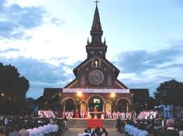 Il y a beaucoup de monde à l’église en bois lors de la fête de Noël. Il y a des catholiques de notre diocèse et des régions lointaines. Auparavant, les prêtres ne pouvaient pas se déplacer dans les villages lointains et reculés, les fidèles se sont rendus massivement dans notre église. Mais aujourd’hui, l’Etat facilite le déplacement des prêtres dans tous les districts de la province, cela permet aux fidèles de célébrer Noël dans leur chapelle en économisant de temps et en réduisant la charge de notre église. Et pourtant, nous accueillons chaque année de 5 à 6 mille fidèles à Noël et à Pâques.