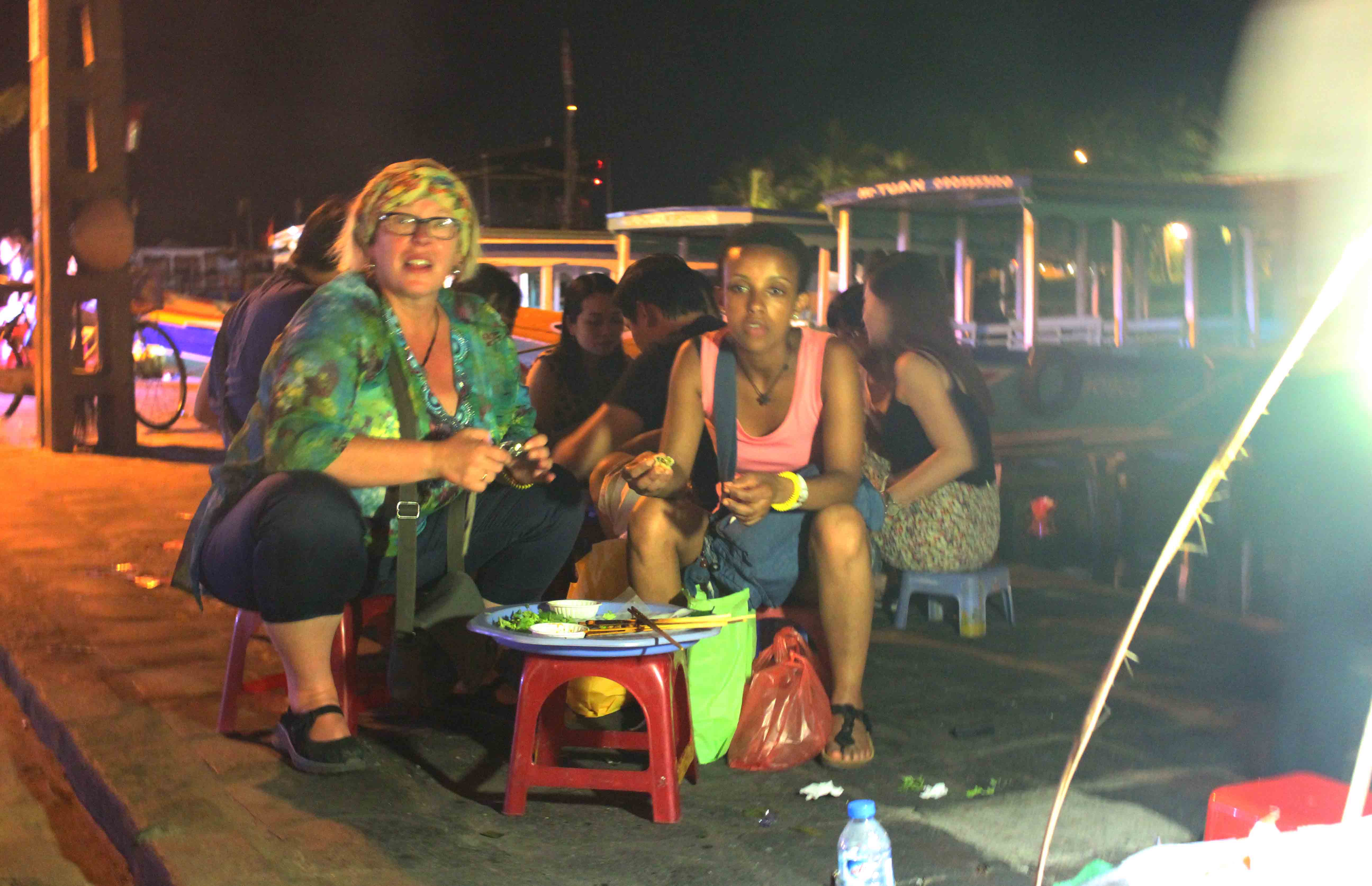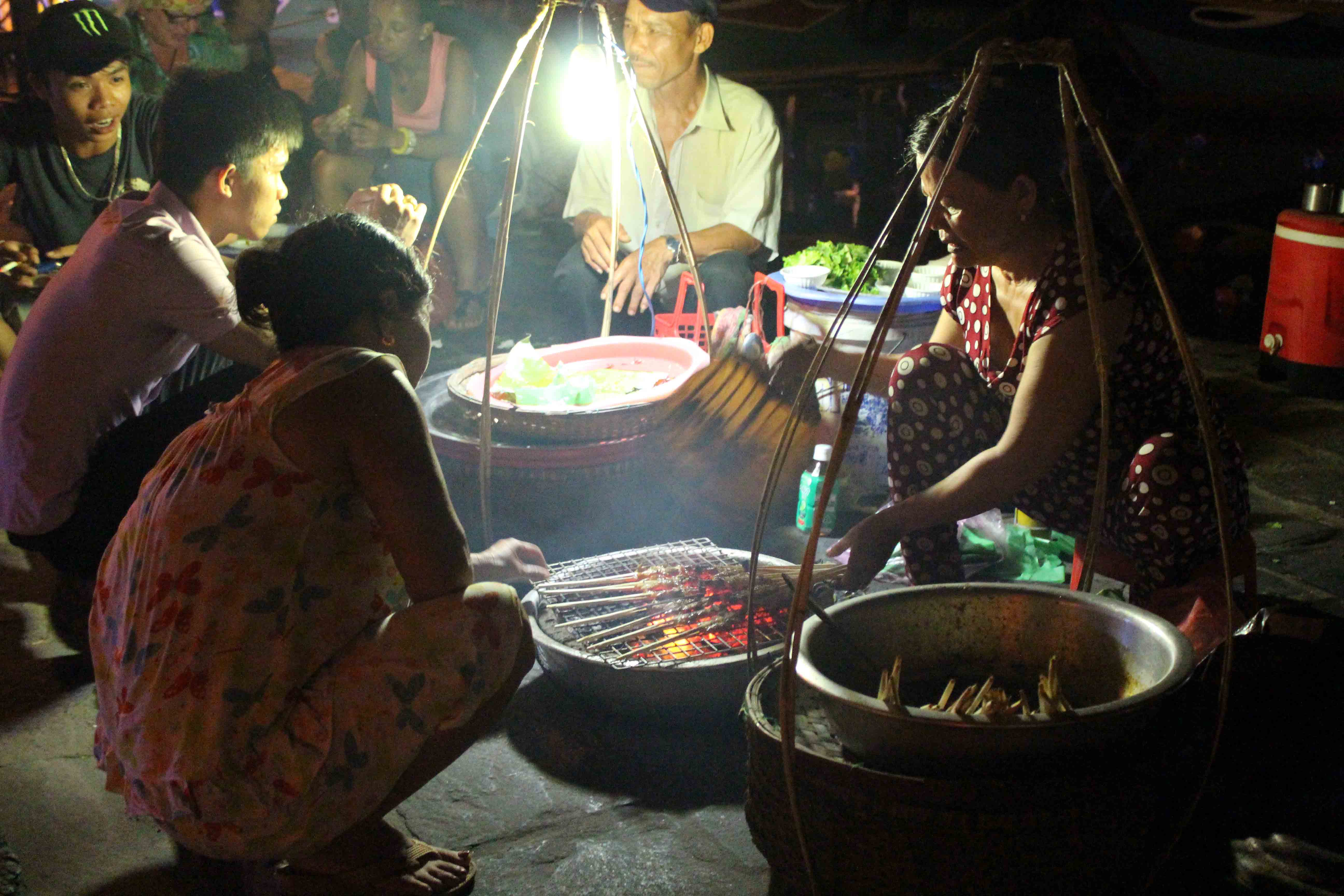 Sur place, simplicité rime avec convivialité. Vous prenez un tabouret et vous vous joignez au cercle de ceux qui regardent attentivement le maître des lieux qui est en train de tourner et retourner la viande pour qu’elle soit cuite à point. Un barbecue en plein centre de Hoi An, qui dit mieux ?