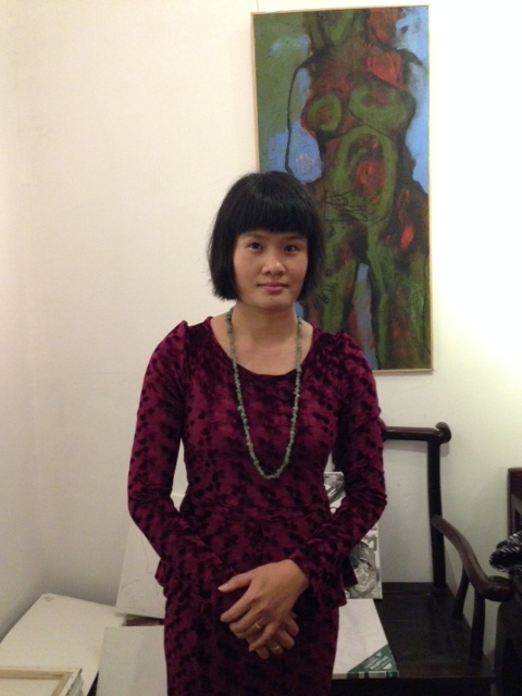 Nous sommes maintenant au 1er étage d’un grand immeuble, attenant à la Cinémathèque. Malgré la bruine, de nombreuses personnes sont venues pour célébrer le 8ème anniversaire de la « maison des Arts » et les 35 ans du retour à Hanoï de Nguyễn Nga.