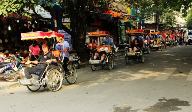 Nous sommes aujourd’hui sur un cyclo-pousse pour faire un tour de Hanoi. Qu’est-ce qu’un cyclo-pousse, allez-vous me dire? Eh bien c’est un véhicule à propulsion humaine, avec une banquette à l'avant pour les passagers et le conducteur qui pédale derrière. Son ancêtre? Le pousse-pousse, moyen de transport très répandu à l’époque coloniale, mais qui réduisait les pauvres conducteurs à n’être que des bêtes de somme… C’est pour redonner un semblant de dignité à ces derniers qu’un ingénieur français a eu l’idée de créer un véhicule à mi-chemin entre le vélo et le pousse-pousse.