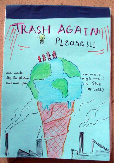 Tous ont été très étonnés de l’enthousiasme des enfants qui ont trés compris l’importance de conserver les papiers pour créer de beaux carnets en utilisant seulement des agrafes, et des crayons. Avec l’aide des membres de « Trash again », les enfants peuvent décorer leurs « œuvres » avec des images et exprimer leurs points de vue sur la protection de l’environnement.