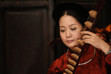 Chaque soir, le chant des courtisanes résonne dans un calme patio intérieur, sobrement arrangé et fleuri, dans la vieille maison du 87, rue Ma May. Dans un endroit agé de centaines d’années avec les airs folkoriques, la chanteuse et instrumentistes du club de ca tru Thang Long nous ramènent à un Hanoi ancien et fantasmagorique. L'ancien quartier est en harmonie avec le ca trù, au sein d'un espace architectural de Hanoi d'autrefois. Parmi les dizaines clubs similaires, Ca trù Thang Long est considéré comme l'un de ceux réunissant le plus de jeunes chanteuses et d'instrumentistes de talent et passionés. Il organise plusieurs activités significatives dans la préservation de trésor culturel du pays, à commencer par des spectacles de ca trù dans l'espace de la maison communale, Pham Thi Hue, présidente du club de ca tru Thang Long nous confie : "Nous avons reçu un grand soutien de la part du comité populaire de Hanoi et du comité de gestion de vieux quartier de Hanoi pour organiser ensemble les représentations de ca tru dans la maison de patrimoin de 87 rue Ma May. Il s’agit d’un espace pour les amoureux de ca tru où ils peuvent savourer et étudier cet art traditionel du peuple. Par ailleurs, notre objectif est de présenter le ca tru aux amis étrangers et de nourrir de l’amour pour la musique folklorique chez les jeunes generations. Ce ne sera pas difficile si l’on peut élaborer un plan concret à long terme pour préserver et déveloper cet art traditionnel."