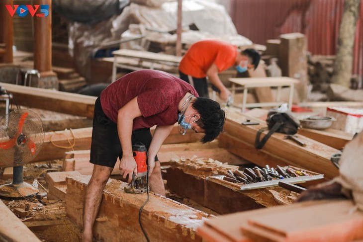 Les menuisiers travaillent jour et nuit pour pouvoir livrer à temps. Photo: Bao Bac Giang.