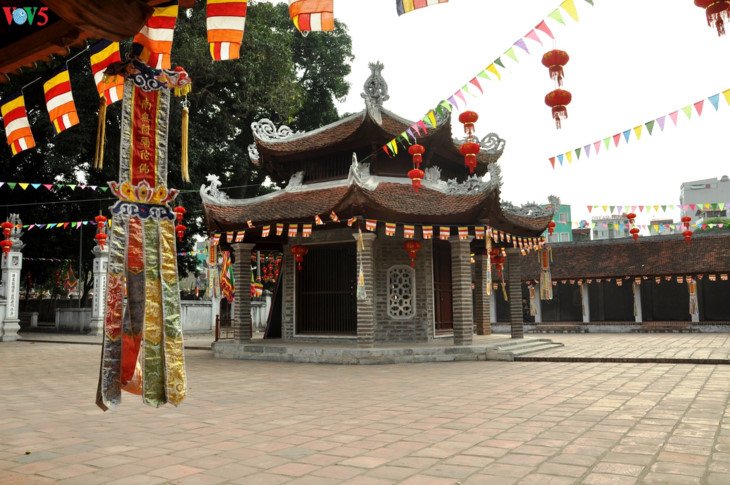 Un panneau transversal rappelant l’anecdote sur la réincarnation du bonze Tu Dao Hanh.