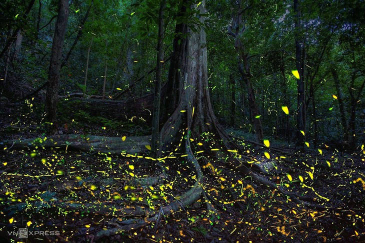 La lumière hypnotisante des lucioles fait de Cuc Phuong un espace mythique de contes de fées. Photo: Nguyên Huy Thông/vnexpress |