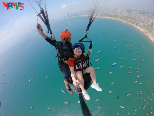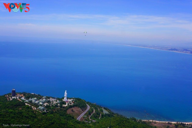 | Son Trà passe pour être un site idéal, au Vietnam, pour le parachutage, car il offre une vue panoramique de toute la ville, de la mer et de la forêt. |