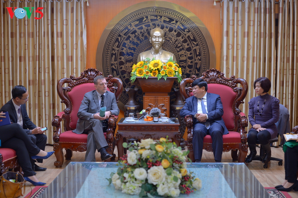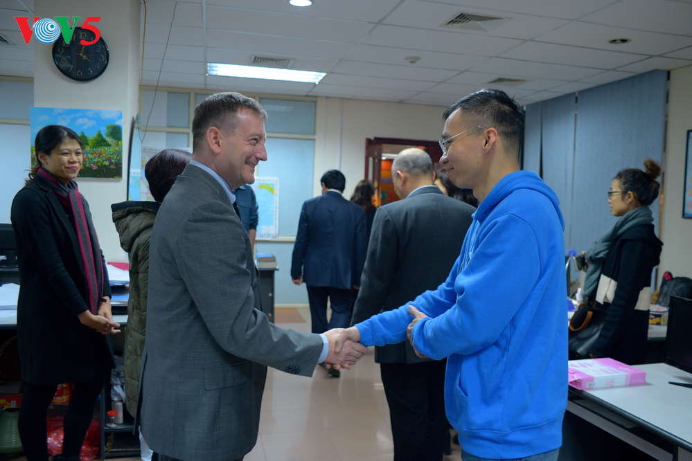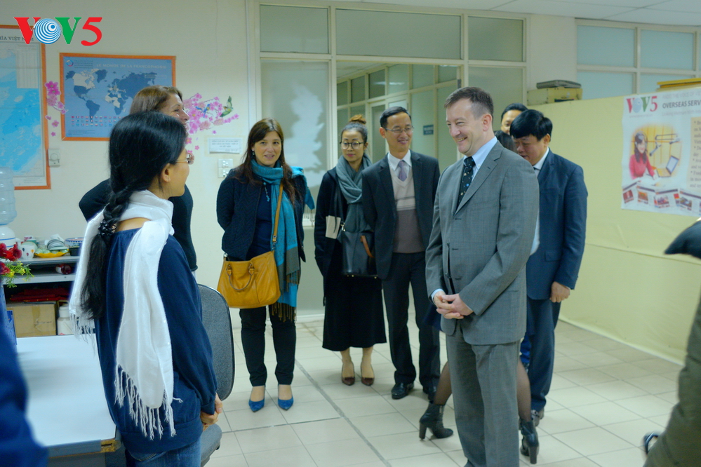 L’ambassadeur français a eu l’occasion de se renseigner sur le travail des responsables et du personnel de VOV5.