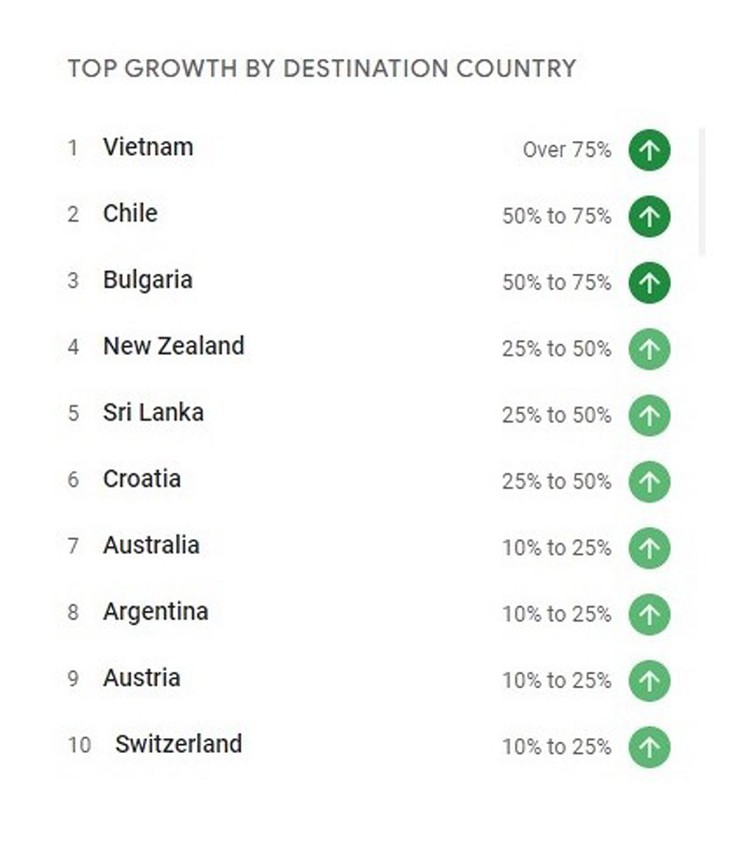 Début février 2022, les recherches sur les vols vers le Vietnam ont connu une forte augmentation : 425% en glissement annuel. À la mi-février, elles ont même enregistré une hausse de 654% par rapport à la même période de 2021.