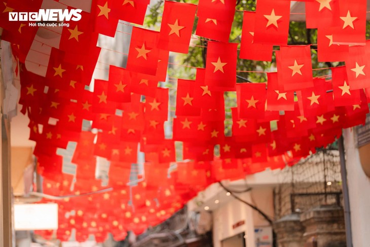Même les petites ruelles, comme celle de Dang Thai Thân, vibrent sous le souffle des drapeaux suspendus, conférant à Hanoï une élégance à la fois populaire et solennelle.