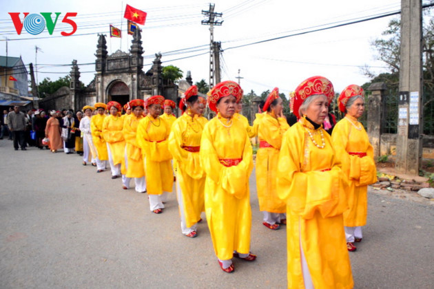 Plusieurs rites sont organisés : procession de l’eau depuis la pagode jusqu’à la maison communale de Tam Giang pour laver le génie tutélaire, présentation d’offrandes, procession pour amener le génie vers la pagode, danses de la licorne et du dragon… |