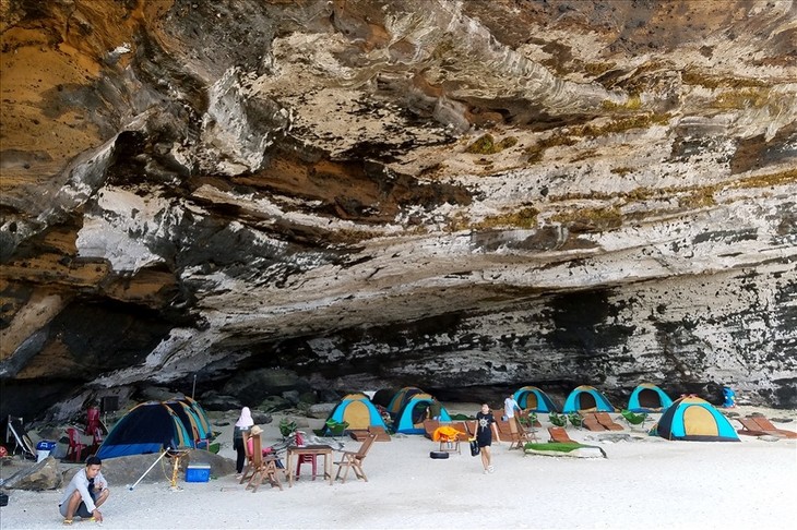 Beaucoup de jeunes choisissent la grotte de Câu pour pratiquer le camping. Photo: laodong.vn