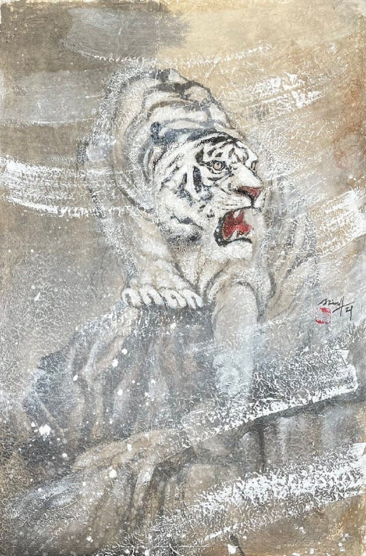 Cette année, le peintre de 48 ans a réalisé autant de peintures au sujet du tigre : une manière comme une autre de célébrer son nouvel âge. |