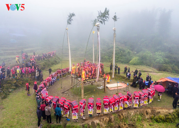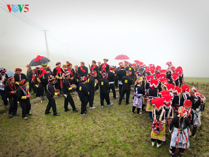 Le dernier jour de la cérémonie, les jeunes couples pour lesquels le câp sac a eu lieu, se réunissent autour d’un autel érigé en plein air pour recevoir des mains du chaman un papier portant un sceau marquant leur passage officiel à l’âge adulte.
