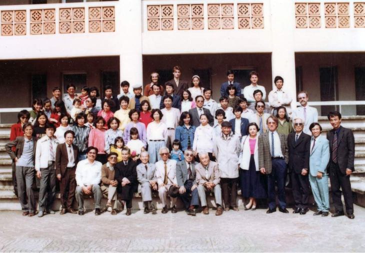 ![]() Photo de famille entre professeurs du Département, officiels de l’ambassade de France et un volontaire du service national français au Vietnam, prise le 20 novembre 1991.