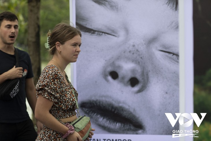 Les visiteurs affluent pour admirer une exposition de photos en plein air qui se déroule dans la rue piétonne autour du lac Hoan Kiêm, en plein centre de Hanoi.
