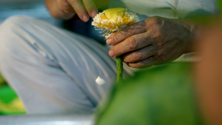 Cueillies au petit matin, les fleurs de lotus gardent encore tous leurs parfums dans les pétales. |