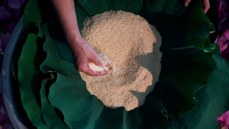 Surnommée « riz de lotus » en raison de sa forme et de sa couleur, cette partie n’est autre que les anthères du lotus. |