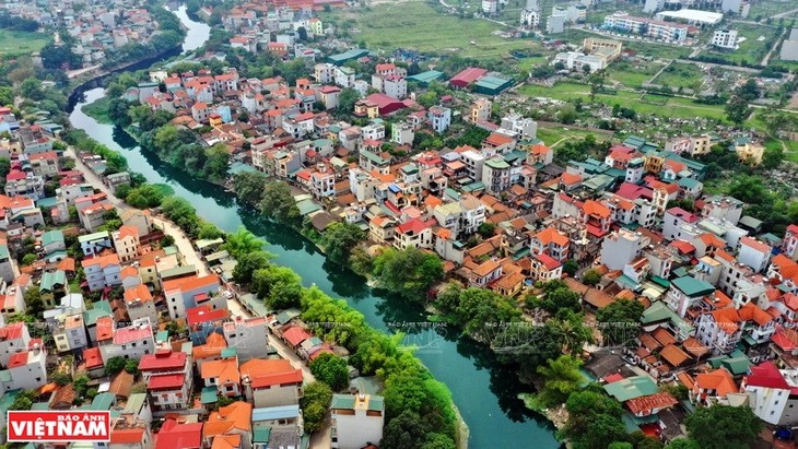 Niché au bord de la paisible rivière Nhuê, dans la commune de Cu Khê (district de Thanh Oai), Cu Dà incarne l'âme des campagnes du Nord du Vietnam avec son architecture traditionnelle, ses temples, sa porte de village, et son banyan emblématique. Photo: Khanh Long /VNP
