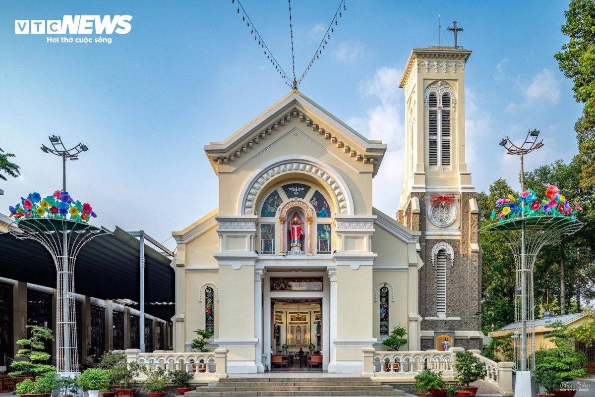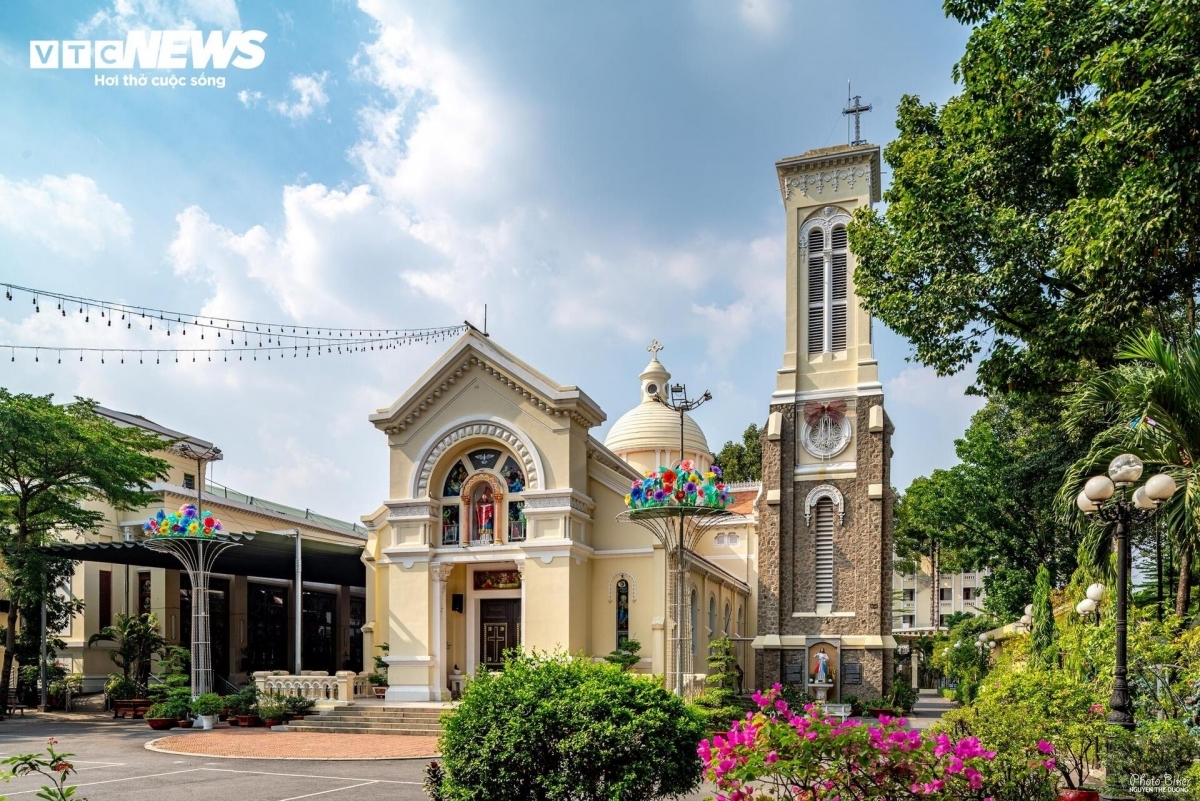 Vue de l'extérieur, l'église impressionne par son dôme principal culminant à environ 30 mètres, surmonté de croix. Son clocher, bâti en pierre, atteignait à l'origine la même hauteur, avant d'être abaissé à quelque 19,5 mètres en 1952, sa proximité avec l'aéroport de Tân Son Nhât rendant cette réduction nécessaire.