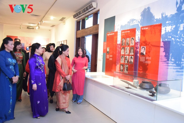 L’épouse du président indonésien se montre impressionnée par les images et les objets ayant appartenu à des révolutionnaires vietnamiennes telles que Nguyên Thi Minh Khai, Hà Thi Quê… |