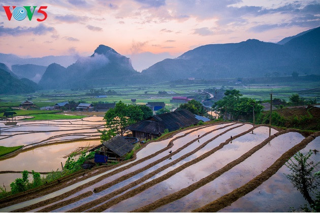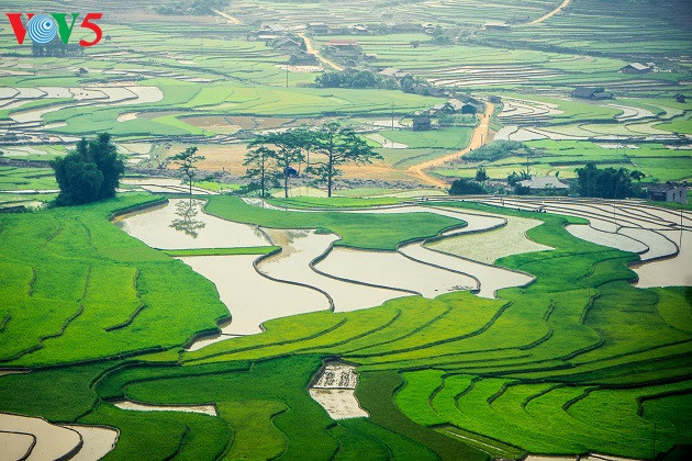 (VOVWORLD) - Quand on parle des rizières en terrasse de Mu Cang Chai, on pense tout de suite au jaune du riz mûr qui s’étend à l’infini. Mais si vous y passez ces jours-ci, en pleine saison de repiquage, vous serez tout aussi émerveillés par le paysage multicolore offert par ces rizières.
