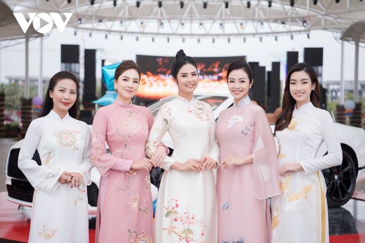 Des Miss et animatrices connues en ao dài lors d’un évènement organisé dans la province de Quang Ninh. Photo: VOV