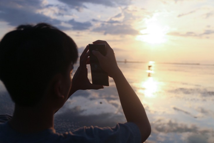 L’estran se transforme alors en un immense miroir, reflétant magnifiquement le ciel et les nuages, créant un paysage d'une beauté éblouissante. Photo: Tiên Nguyên