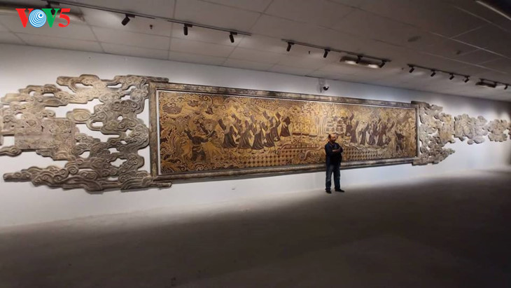 Le projet a été réalisé en plus de trois mois, avec 15 artistes, secondés par plus de 100 assistants et des artisans d’une bonne dizaine d’ateliers de Hanoi, Thai Binh et Huê.