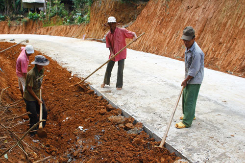 La population s’implique, donc, on l’aura compris, et pas seulement dans le district de Phu My. Dans celui - montagneux - de Vinh Thanh, près de 22 kilomètres de routes ont pu être tracés, grâce aux contributions des habitants, contributions aussi bien sous forme de parcelles de terrain que sous forme de matériaux de construction apportés généreusement.
