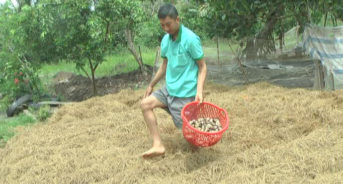 Profitant de l’intersaison agricole, Nguyễn Văn Lâm, qui est un agriculteur de la municipalité de Ngã Năm, ramasse de la paille pour pouvoir cultiver des champignons. Sachant qu’il lui faut à peu près 20 jours pour pouvoir récolter près de 100kg de volvaires par jour, qu’il possède à peu près 400 pots et que le kilo de champignons se vend à 25 mille dongs ou plus, il empoche près de 15 millions de dongs par mois. Nguyễn Văn Lâm: « Après avoir récolté le riz, nous gardons la paille pour cultiver des volvaires. Ça nous permet de gagner des dizaines de millions de dongs par an. La culture des champignons est moins pénible et surtout beaucoup plus rentable que la riziculture... »