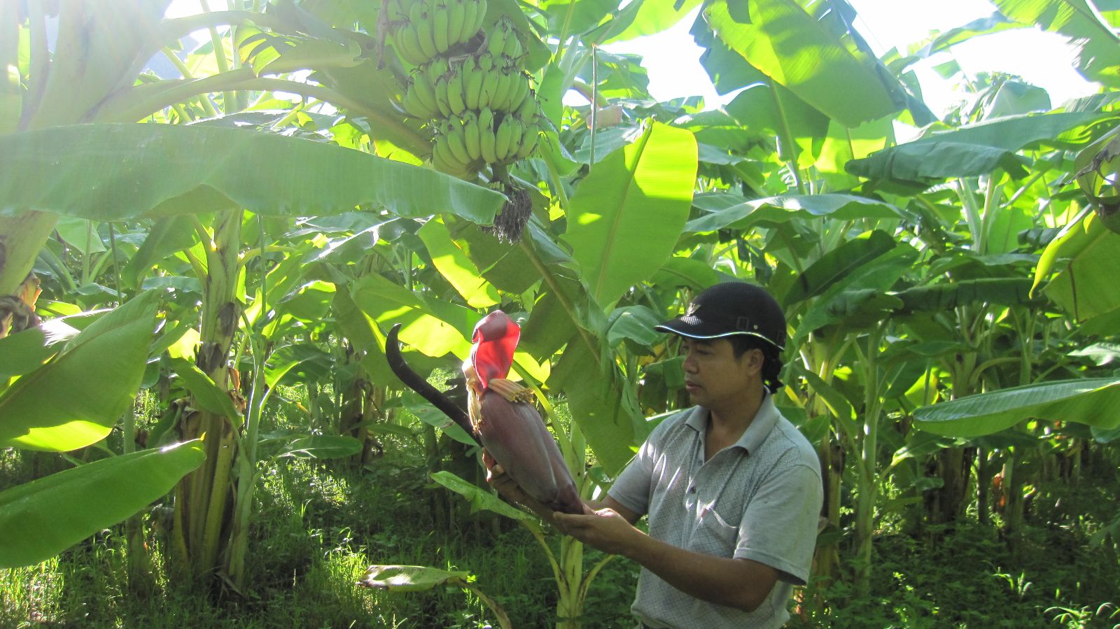 Dans la famille de Mme Hà Thị Đỏ, hameau de Đông Khoài, commune de Tú Nang, la culture des bananiers est transmise de génération en génération. Les fruits et les fleurs de la banane sont vendus et le tronc est coupé pour nourir les animaux domestiques. Le rendement du maïs étant faible et le coût de production onéreux, Đỏ a décidé, en 2010, de transformer un hectare de maïs en culture de bananiers. Avec 300 bananiers et des récoltes effectuées 3 ou 4 fois par an, elle arrive à produire quelque 5 tonnes de bananes au prix de 4.000 à 6.000 dongs par kilo.
