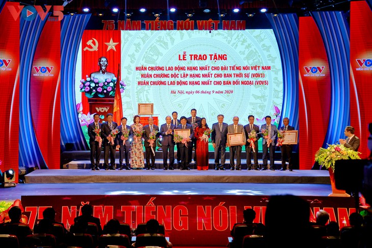 Le 75e anniversaire de la Voix du Vietnam. Notre radio a reçu par la même occasion l’Ordre du Travail, première classe (photo: Duc Anh/VOV5) |